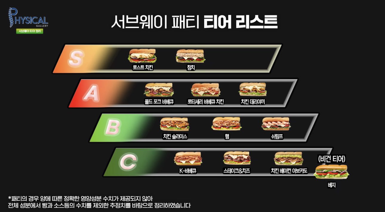 300만 유튜버 피지컬 갤러리에서 알려준 자료 티어를 보겠다.